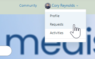 - Select the ‘Requests’ from the drop down under your username in the upper right corner of the page.