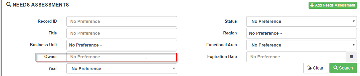 To locate records in which you are the owner, simply navigate to the search page of the module in question, then filter on the owner filter here and select your name: