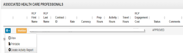 Activity Reports can be created from both the 'Contracts' and 'Engagements' modules by selecting the 'Activity Report' button when available.